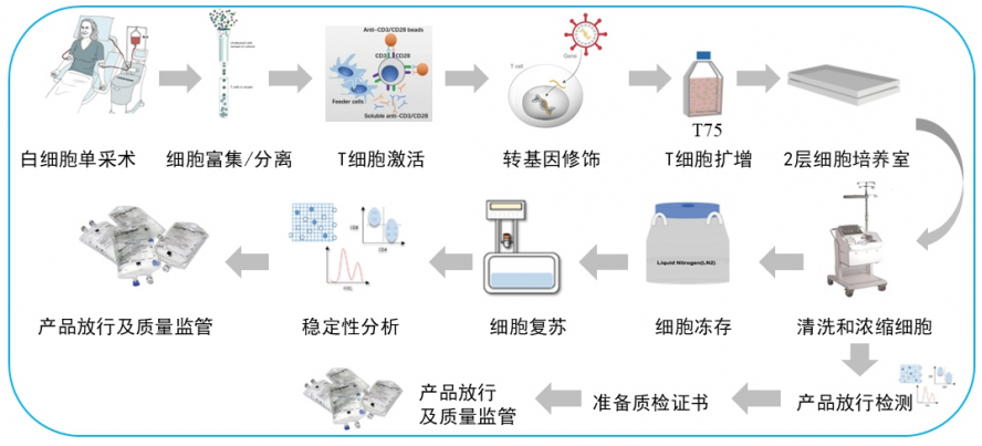 GMP-grade CAR-T cell industrial production process